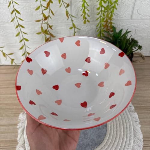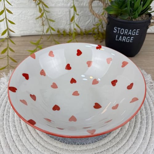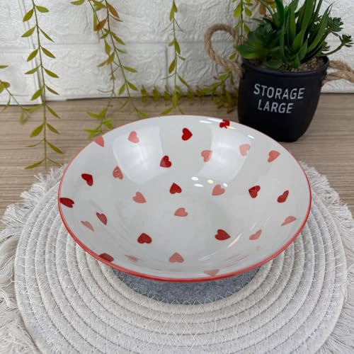 Generic - جيني وعاء تقديم من السيراميك بنمط قلب احمر وزهري، ابيض مع حافة حمراء، بار