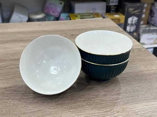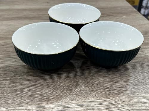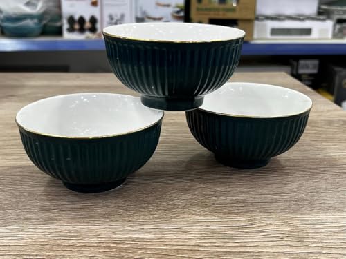Generic - جيني طقم اوعية شوربة سيراميك بقطر 12 سم، اخضر داكن مع حافة ذهبية، تصميم مضلع، مجموعة من 3 قطع