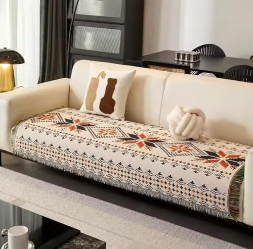 Generic - جيني غطاء اريكة من الشانيل مع تفاصيل شراشيب، نمط هندسي، 200 سم × 75 سم، بطانية اريكة زاوية (لون ابيض)