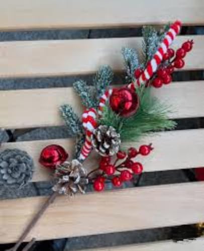 generic - جيني صنوبر صناعي لعطلة الكريسماس مع التوت الاحمر، قصب الحلوى، مخاريط الصنوبر، فروع مصنفرة للديكور الاحتفالي الشتوي وصنع اكليل الزهور