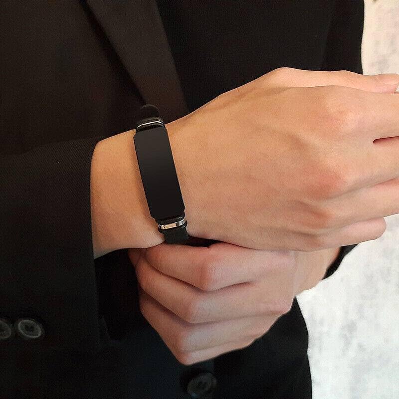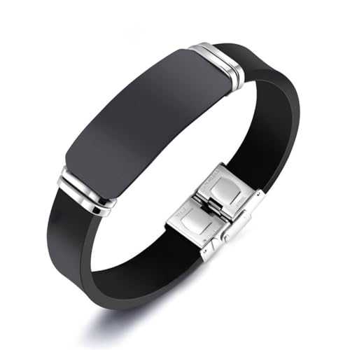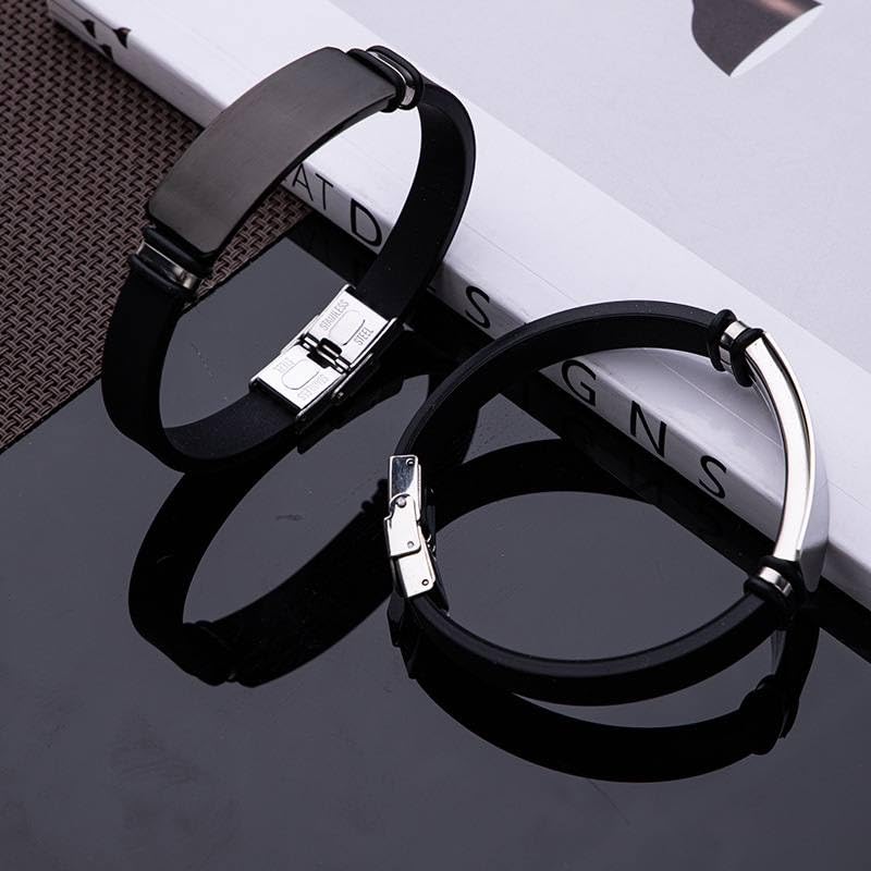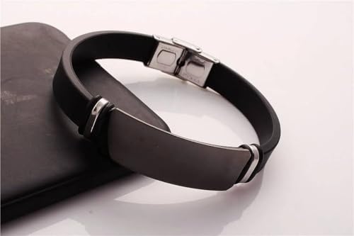 Generic - سوار رياضي كلاسيكي بسيط بلون اسود من الستيل المصقول بمرآة السيليكون للرجال مجوهرات عصرية اكسسوارات