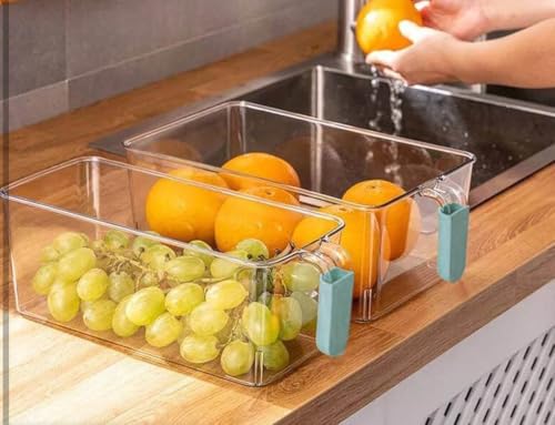 Generic - جيني منظم مطبخ اكريليك شفاف، حاوية تخزين للثلاجة مع مقابض، 18 × 28 سم. لون