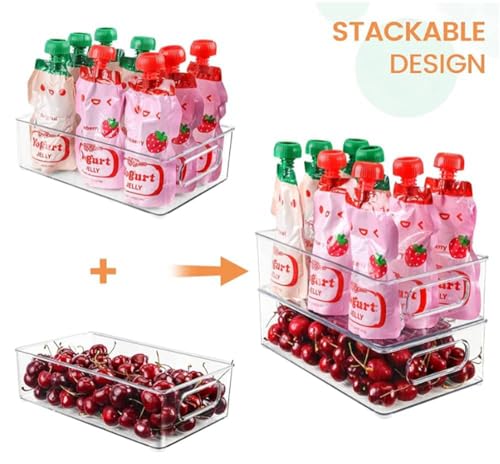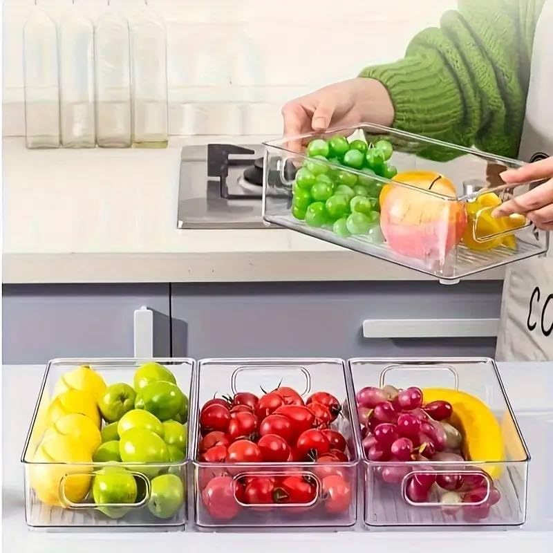 Generic - جيني منظم درج ثلاجة اكريليك شفاف مع مقبض، صناديق تخزين قابلة للتكديس للفواكه والخضروات والبرطمانات والمكياج حاوية شفافة متعددة الاغراض