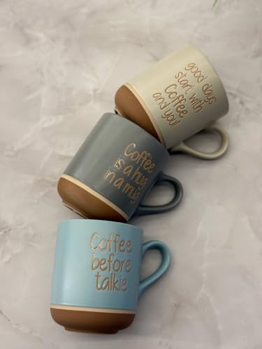 - التصميم: لمسة جمالية عصرية مع رسالة "Coffee before talkie" بحروف ذهبية معدنية تضيف طابعًا شخصيًا إلى روتينك الصباحي.