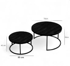Homz - طاولة قهوة مصنوعة من الخشب والمعدن، بتصميم متداخل، باللون الأسود، حجم متوسط