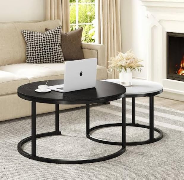 • التصميم: دائري: تتميز طاولة القهوة هذه بشكل دائري، مثالية للمساحات الصغيرة وسهولة التنقل