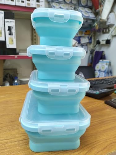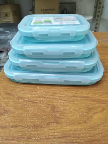 Generic - جيني حاويات تخزين طعام قابلة للطي مع اغطية، مجموعة من 4 قطع، 350 مل - 1200 مل، امنة للاستخدام في الميكروويف