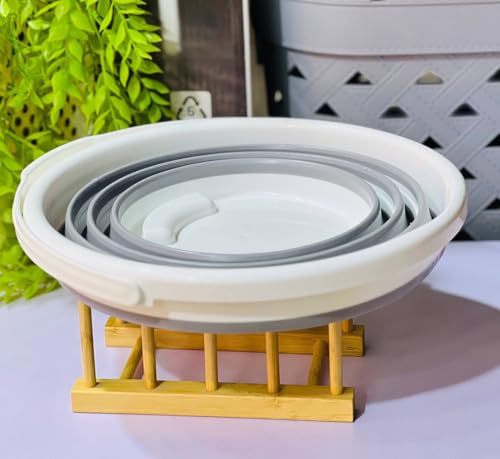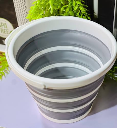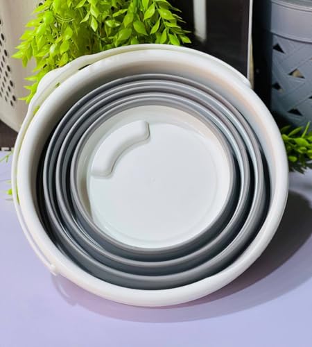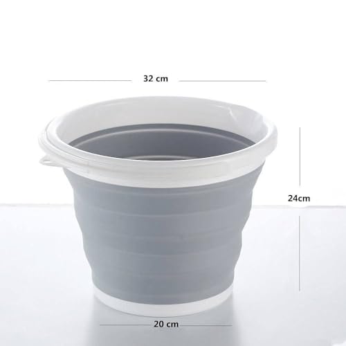 Generic - دلو سيليكون بتصميم قابل للطي محمول ومزود بمقبض لسهولة التخزين، لون رمادي وأبيض، سعة 8 لتر