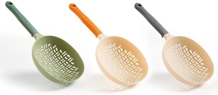 - مصممة للاستخدام المتعدد، يمكن استخدامها كـمصفاة وملعقة في آن واحد، مثالية لتصريف المعكرونة أو الخضار.