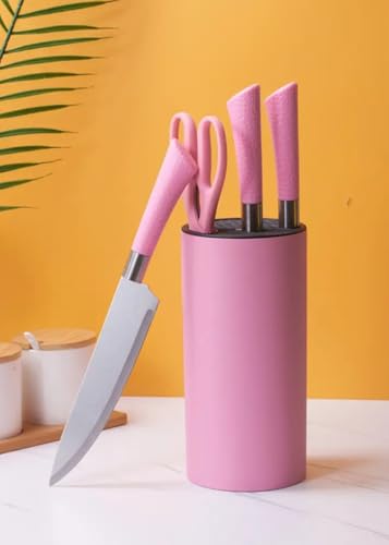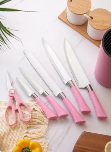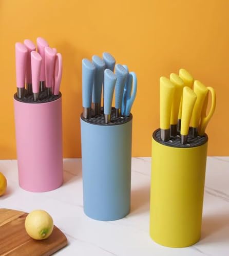 - خيارات ألوان نابضة بالحياة: تأتي مجموعة السكاكين المكونة من 7 قطع بثلاثة ألوان لافتة للنظر - بينك وأزرق وأصفر - لإضفاء إشراقة على مطبخك.