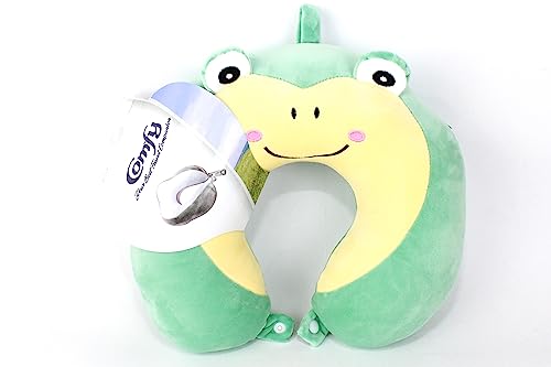 Generic - مخدة رقبة مريحة من الألياف الناعمة للسفر على شكل حرف U للسيارة والسفر والمكتب والطائرة - تصميم ضفدع، إسباندكس، فيروزي