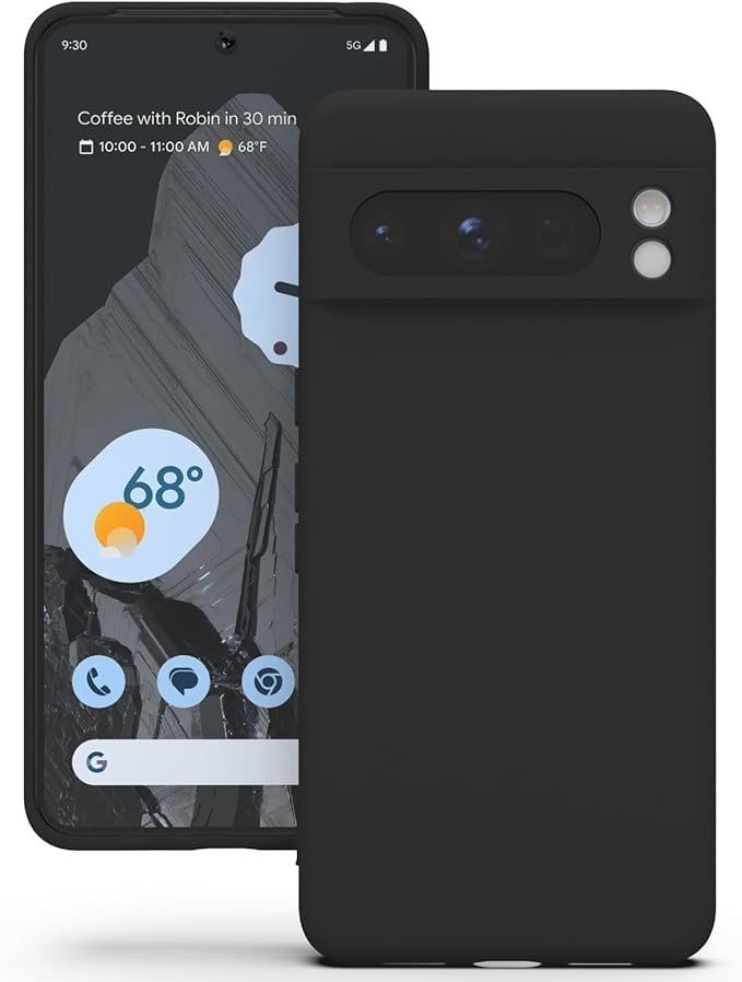 Generic - جراب حماية خلفي من السيليكون السائل متوافق مع موبايل جوجل بيكسل يوفر حماية من جميع الجوانب، تصميم مقاوم للخدش مع بطانة ناعمة من المايكروفايبر، لموبايل جوجل بيكسل 8 برو (أسود)