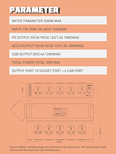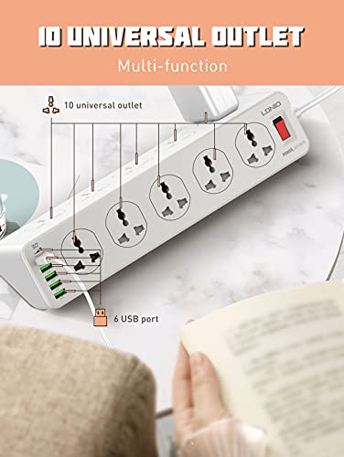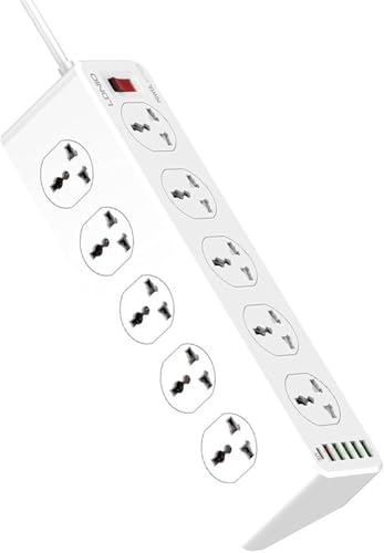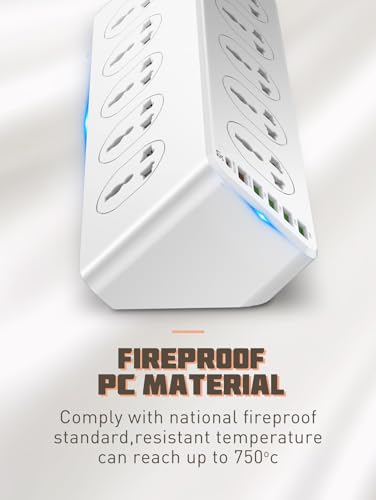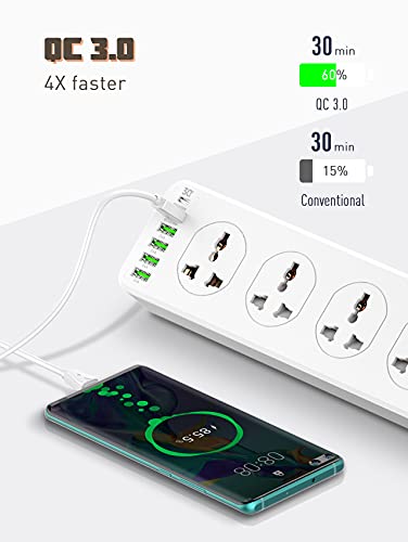 Generic - شاحن منزلي متوافق SC10610 بقدرة 2500 واط و10 مقابس و5 منافذ USB ومنفذ بي دي نوع سي كيو سي 3.0 (أبيض)، من لدنيو