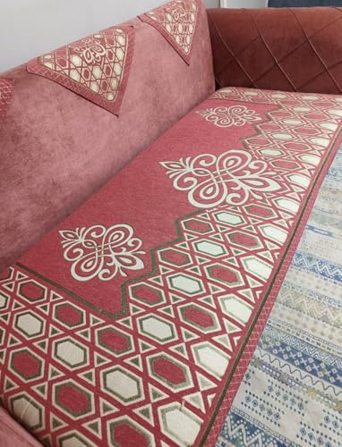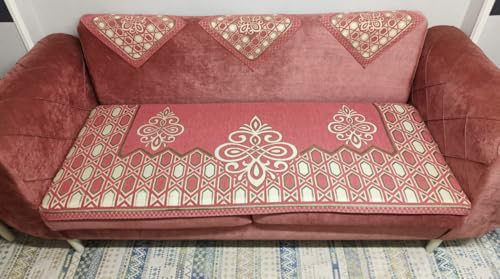 Generic - أغطية لكنب الركنة من الكتان بنقشة أشكال هندسية أنيقة، 2 غطاء للكنب الكبير و1 للكنبة المعلقة على الحائط 75 سم×2 م و6 مناديل متضمنة، طقم مكون من 8 قطع، لون كشمير