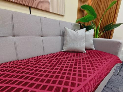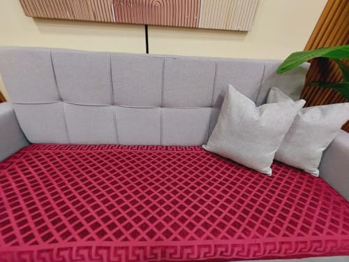 Generic - جيني طقم اريكة قطن شانيل بشراشيب، طقم من 10 قطع، اريكة كبيرة 195 × 80 سم، اريكة صغيرة 145 × 80 سم، كرسيين 80 × 80 سم، (بورغندي)