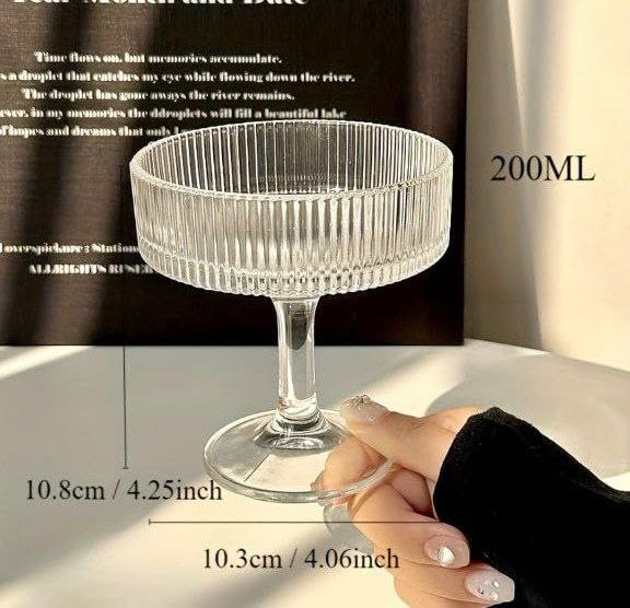 - تصميم أنيق: أكواب الكريستال الكوبيه تتميز بتصميم متقن ذو نمط متدرج، مما يجعلها مثالية لتقديم الحلويات والكوكتيلات بأناقة.