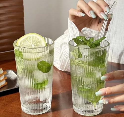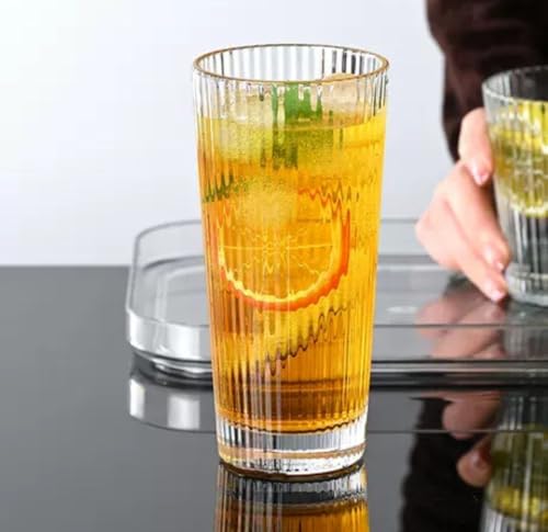 Generic - طقم أكواب شرب كريستالية بحواف ذهبية، سعة 350 مل، أكواب للمشروبات الباردة للمياه والعصير والكوكتيلات من 6 قطع