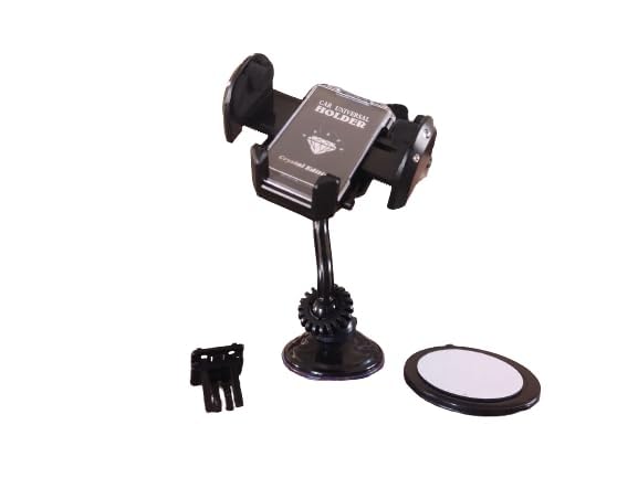generic - حامل سيارة 2 في 1 من كريستال إيديشن للتابلوه/ زجاج مقدمة السيارة مع دوران 360 درجة، أذرع بارتفاع قابل للتعديل ومستقر يناسب جميع الهواتف الذكية - أسود من جينيرك