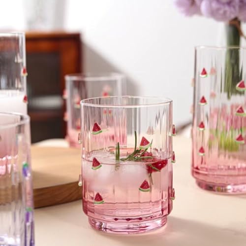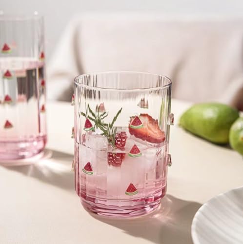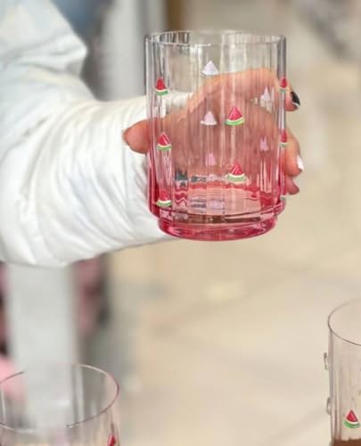 Generic - جيني طقم زجاج كريستال منقوش بتصميم بطيخ، سعة 400 مل، مجموعة من 4 قطع للمشروبات الباردة والعصائر، .ان ان