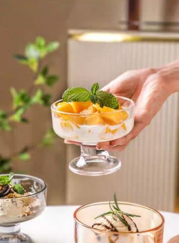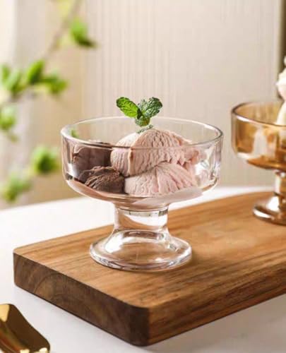 - زجاج كريستالي فاخر: كأس أنيق مصنوع من زجاج الكريستال الشفاف بنقاء ولمعان استثنائيين، مثالي لتقديم الحلويات بشكل أنيق.