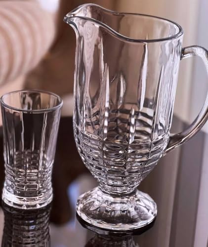 - مجموعة فاخرة: تتضمن مجموعة الأواني الزجاجية الكريستالية المكونة من 7 قطع إبريق مزخرف و6 أكواب شرب بتصميم أنيق بنمط كريستالي مقطوع