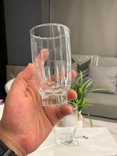 Generic - كاسات شرب مضلعة من الزجاج الكريستالي بسعة 360 مل، طقم من 6 قطع