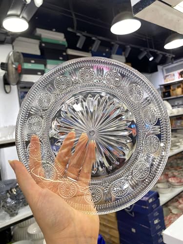 - تصميم أنيق: طقم تقديم من الزجاج الكريستالي يتميز بنقشات انفجار نجمي دقيقة وحواف مرصعة بتفاصيل دقيقة لعرض فاخر.