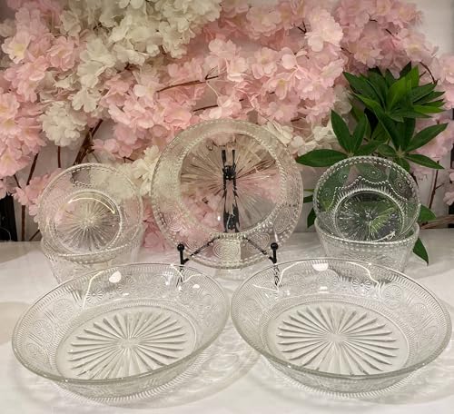 Generic - طقم تقديم زجاجي كريستالي، 7 قطع، 1 بولة كبيرة، 4 أطباق عميقة للتقديم، 2 طبق