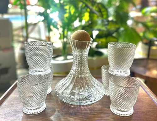 Generic - طقم شربات زجاجي كريستالي سعة 1 لتر مع 6 أكواب تقديم سعة 255 مل، ام كيه