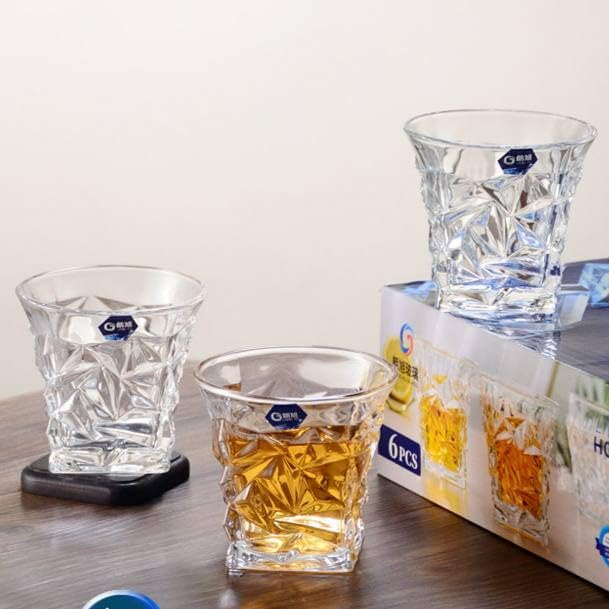 - تصميم أنيق: تتميز هذه المجموعة بـ 6 أكواب زجاجية كريستال بتصميم جميل ومميز بقواعد مربعة وتضيف لمسة من الرقي إلى أي مناسبة.