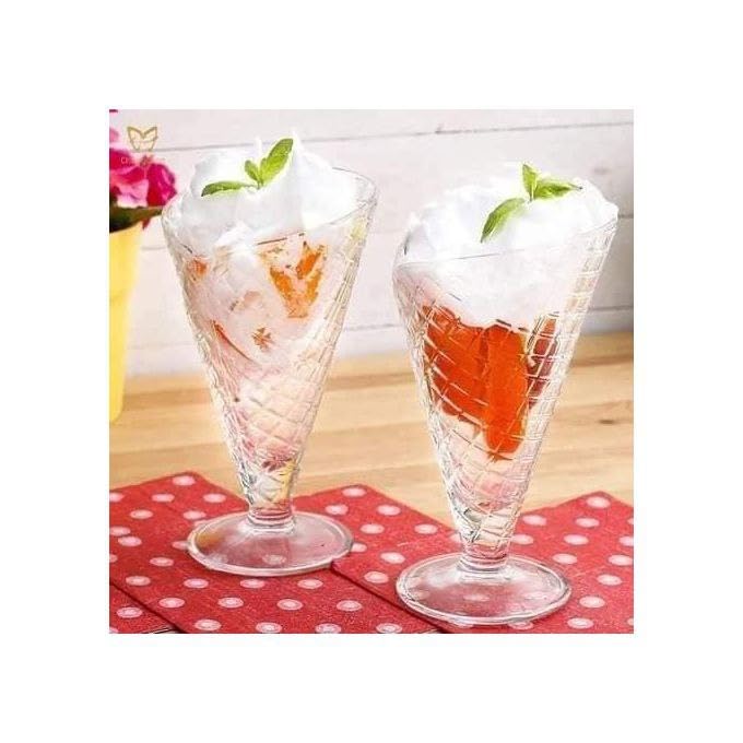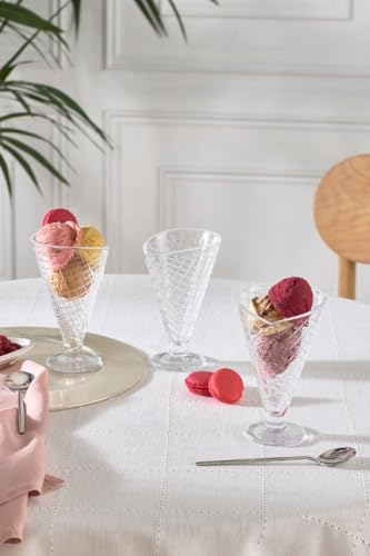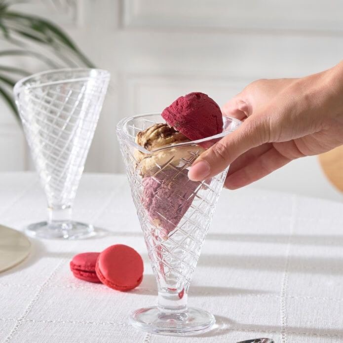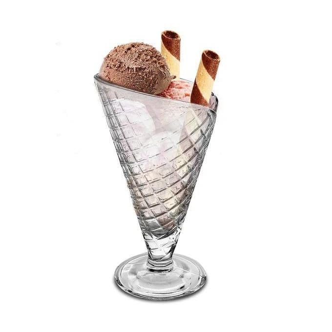 - شكل كلاسيكي: تصميم كوب مثلجات تقليدي مع قاعدة متينة ونمط وافل أنيق يلتقط الضوء ويعكس الضوء