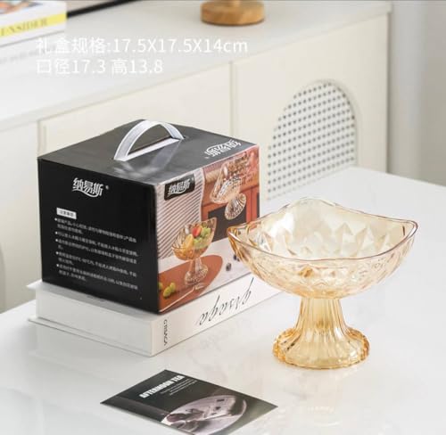 Generic - طبق تقديم وصينية بقاعدة شبيه بالكريستال للتمر والحلويات والشوكولاتة، زجاج شفاف، قطر 17.3 سم، ارتفاع 13.8 سم