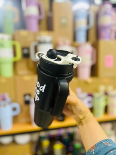 Generic - كوب سفر من الفولاذ المقاوم للصدأ (أسود)، سعة 900 مل، تصميم مقبض معزول