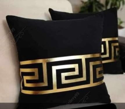 Generic - كيس مخدة مصنوع من جلد وقطيفة بتصميم عصري فاخر مقاس 43 × 43 سم بلون أسود × ذهبي مناسبة لغرفة المعيشة وديكور المنزل - قطعة واحدة