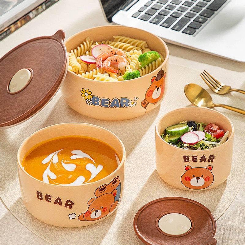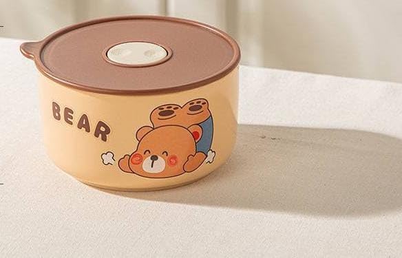 - تصميم متعدد الاستخدامات: حاوية تخزين طعام رائعة على شكل دب مثالية لتخزين الوجبات وإعادة تسخينها، تتميز بغطاء آمن للنضارة