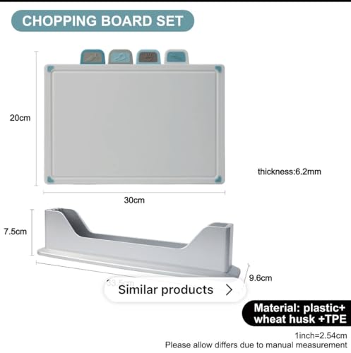 - مجموعة متعددة الاستخدامات: مجموعة ألواح تقطيع من 4 قطع باللونين الأزرق والرمادي مع حامل مصمم خصيصًا للتخزين المنظم وسهولة الوصول إليه.