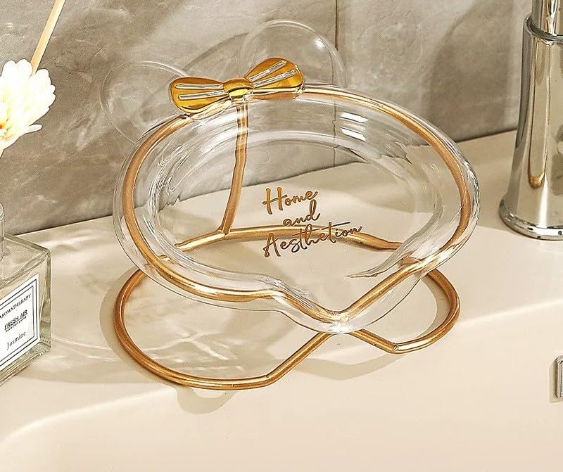 Generic - حامل عرض من الاكريليك مزين بفيونكة ذهبية، لون شفاف وذهبي