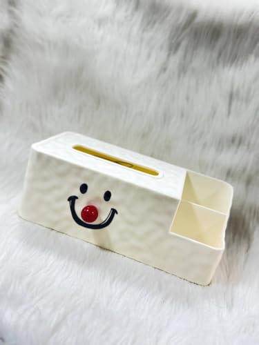 Generic - جيني علبة مناديل اكريليك مزخرفة مع مساحة تخزين وسحاب، لون ابيض