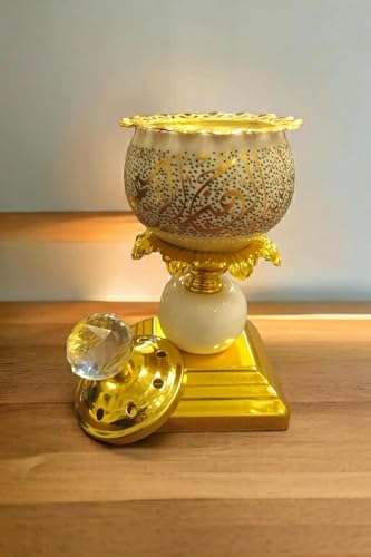 Generic - مبخرة بورسلين مزخرفة بخط عربي، سطح كروي كريستالي بقاعدة ذهبية، ديكور للمنزل والمكتب (أبيض)