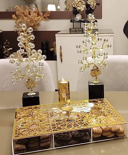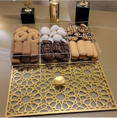 Generic - جيني صندوق تخزين عربي مزخرف بغطاء ذهبي، 36 × 24 سم، 6 مساحات تخزين للحلويات والوجبات الخفيفة