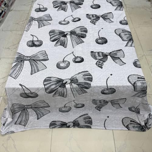 - التصميم: دفاية سرير أنيقة تتميز بنمط أنيق من الفيونكات والكرز بألوان رمادية على خلفية بيضاء، مثالية لديكور غرفة النوم العصرية.