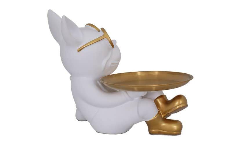 Generic - جيني تمثال كبير الخدم المزخرف، تمثال كلب نظارات شمسية مع صينية ذهبية ومفتاح من الراتنج البرتقالي وحامل مجوهرات (ابيض)