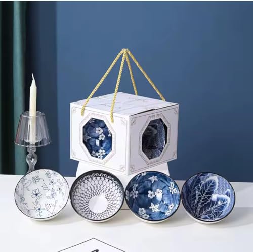 Generic - طقم أطباق عميقة سيراميك للديكور بتصميم زهور باللونين الأزرق والأبيض، عبوة من 4 قطع في علبة هدايا، مقاس 10 سم، موديل A2