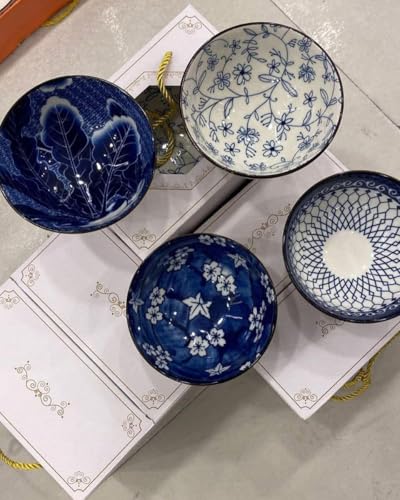 - تصميم أنيق: مجموعة من 4 أطباق عميقة سيراميك بأنماط زخرفية معقدة باللون الأزرق والأبيض بما في ذلك الزخارف الزهرية والتصميمات الهندسية والأعمال الفنية المستوحاة من الطبيعة.