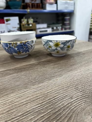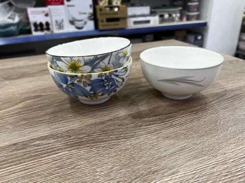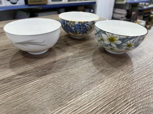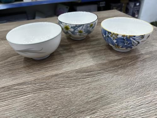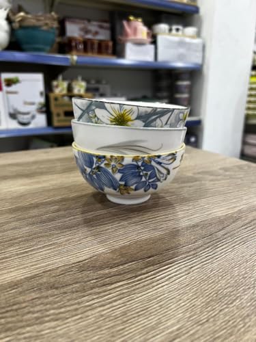 Generic - جيني اوعية سيراميك مزخرفة، مجموعة من 3 قطع، ابيض مع انماط زهور، للحساء والسلطات.
