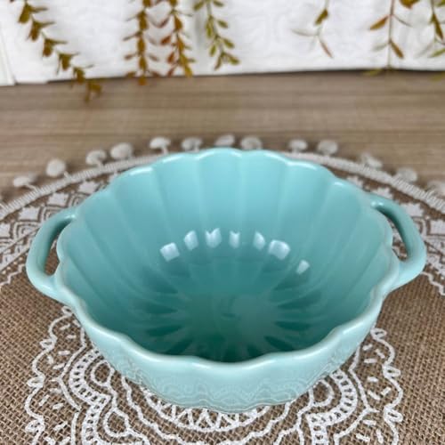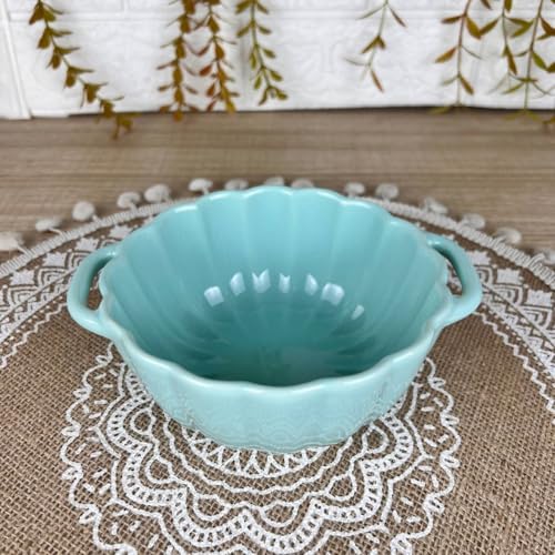 Generic - بولة تقديم سيراميك مزخرف مع مقابض بحافة صدفية، (تركواز)