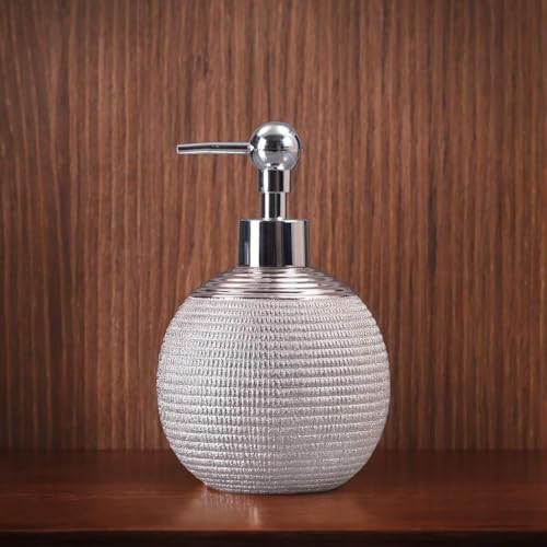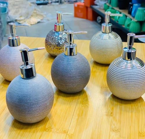 Generic - موزع صابون سيراميكي على شكل كرة بجليتر فضي ومضخة كروم، A2