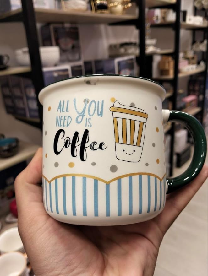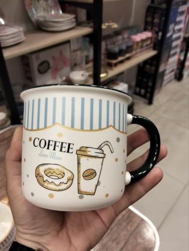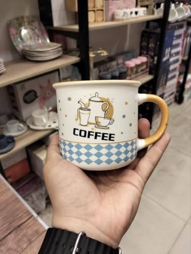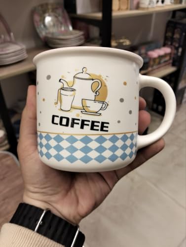 - جاذبية جمالية: مزيج أنيق من القاعدة البيضاء مع نقشات زرقاء ولمسات ذهبية وتصميمات فنية مرحة بطابع القهوة تجعل هذه المجات إضافات زخرفية لأي مطبخ.
