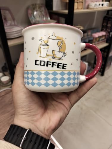 Generic - طقم مجات قهوة مزخرفة من البورسلين متعددة الألوان ومصممة بطابع القهوة