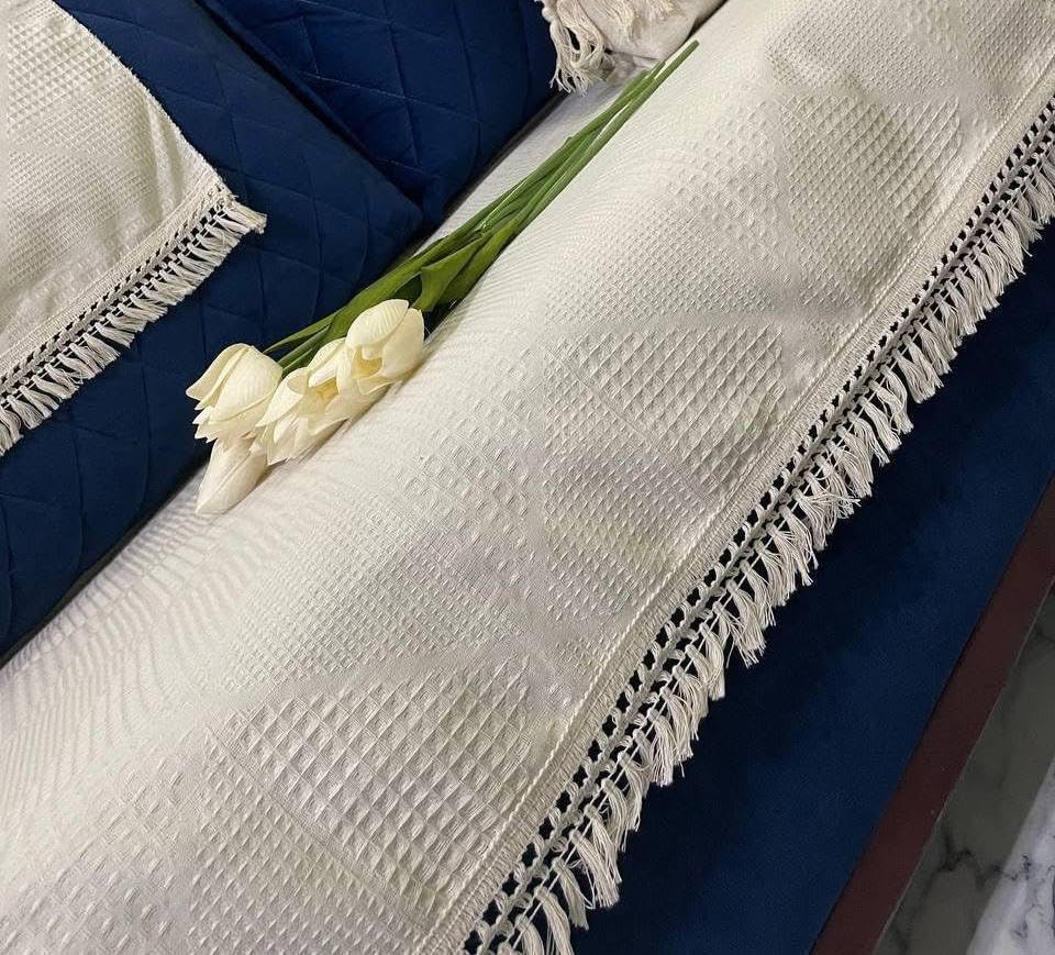 - خامة فاخرة: مصنوعة من القطن بنسبة 100% بنمط نسج الوافل المزخرف الذي يضيف الأناقة والرقي إلى أثاث غرفة المعيشة الخاصة بك